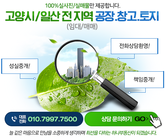 고양시 일산 공장/창고/토지 임대 및 매매는 신뢰할 수 있는 하나공인중개사가 정답이에요!